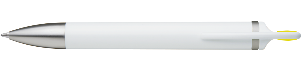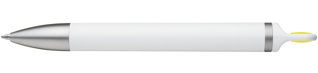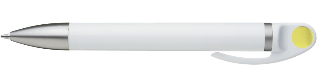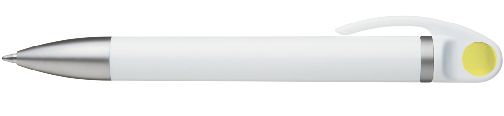 Weißer Kunststoff-Kugelschreiber mit farbigem Clip, blauschreibend.Maße: ø10×138 mmSchreibgerät-Typ: KugelschreiberSchreibgerät-Mechanik: DruckmechanikSchreibfarbe: BlauMinentyp: Normale MineLinienstärke: 1 mmMaterial: Kunststoff (ABS)Veredelungsposition 1: Korpus - rechts vom ClipTechnologie: UV-LED-Druck - EinzelnamenDurchmesser: 0Druckcode: NUVATechnologie: TampondruckMaximale Farben: 4Durchmesser: 0Druckcode: P0Technologie: TampondruckMaximale Farben: 1Durchmesser: 0Druckcode: P1Technologie: UV LED DruckDurchmesser: 0Druckcode: UVAVeredelungsposition 2: Korpus - links vom ClipTechnologie: UV-LED-Druck - EinzelnamenDurchmesser: 0Druckcode: NUVATechnologie: TampondruckMaximale Farben: 4Durchmesser: 0Druckcode: P0Technologie: TampondruckMaximale Farben: 1Durchmesser: 0Druckcode: P1Technologie: UV LED DruckDurchmesser: 0Druckcode: UVAVeredelungsposition 3: KlipTechnologie: TampondruckMaximale Farben: 4Durchmesser: 0Druckcode: P0Veredelungsposition 4: Korpus - in Verlängerung vom ClipTechnologie: TampondruckMaximale Farben: 4Durchmesser: 0Druckcode: P0