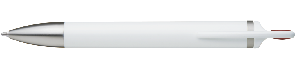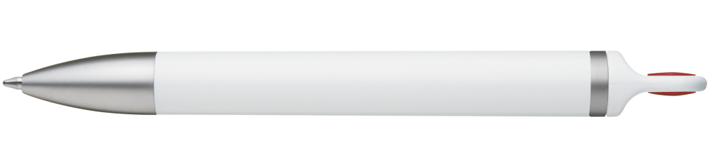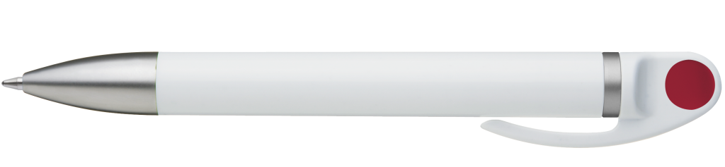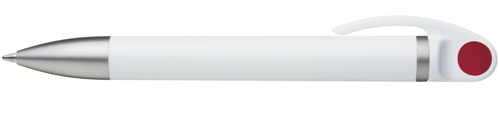 Weißer Kunststoff-Kugelschreiber mit farbigem Clip, blauschreibend.Maße: ø10×138 mmSchreibgerät-Typ: KugelschreiberSchreibgerät-Mechanik: DruckmechanikSchreibfarbe: BlauMinentyp: Normale MineLinienstärke: 1 mmMaterial: Kunststoff (ABS)Veredelungsposition 1: Korpus - rechts vom ClipTechnologie: UV-LED-Druck - EinzelnamenDurchmesser: 0Druckcode: NUVATechnologie: TampondruckMaximale Farben: 4Durchmesser: 0Druckcode: P0Technologie: TampondruckMaximale Farben: 1Durchmesser: 0Druckcode: P1Technologie: UV LED DruckDurchmesser: 0Druckcode: UVAVeredelungsposition 2: Korpus - links vom ClipTechnologie: UV-LED-Druck - EinzelnamenDurchmesser: 0Druckcode: NUVATechnologie: TampondruckMaximale Farben: 4Durchmesser: 0Druckcode: P0Technologie: TampondruckMaximale Farben: 1Durchmesser: 0Druckcode: P1Technologie: UV LED DruckDurchmesser: 0Druckcode: UVAVeredelungsposition 3: KlipTechnologie: TampondruckMaximale Farben: 4Durchmesser: 0Druckcode: P0Veredelungsposition 4: Korpus - in Verlängerung vom ClipTechnologie: TampondruckMaximale Farben: 4Durchmesser: 0Druckcode: P0