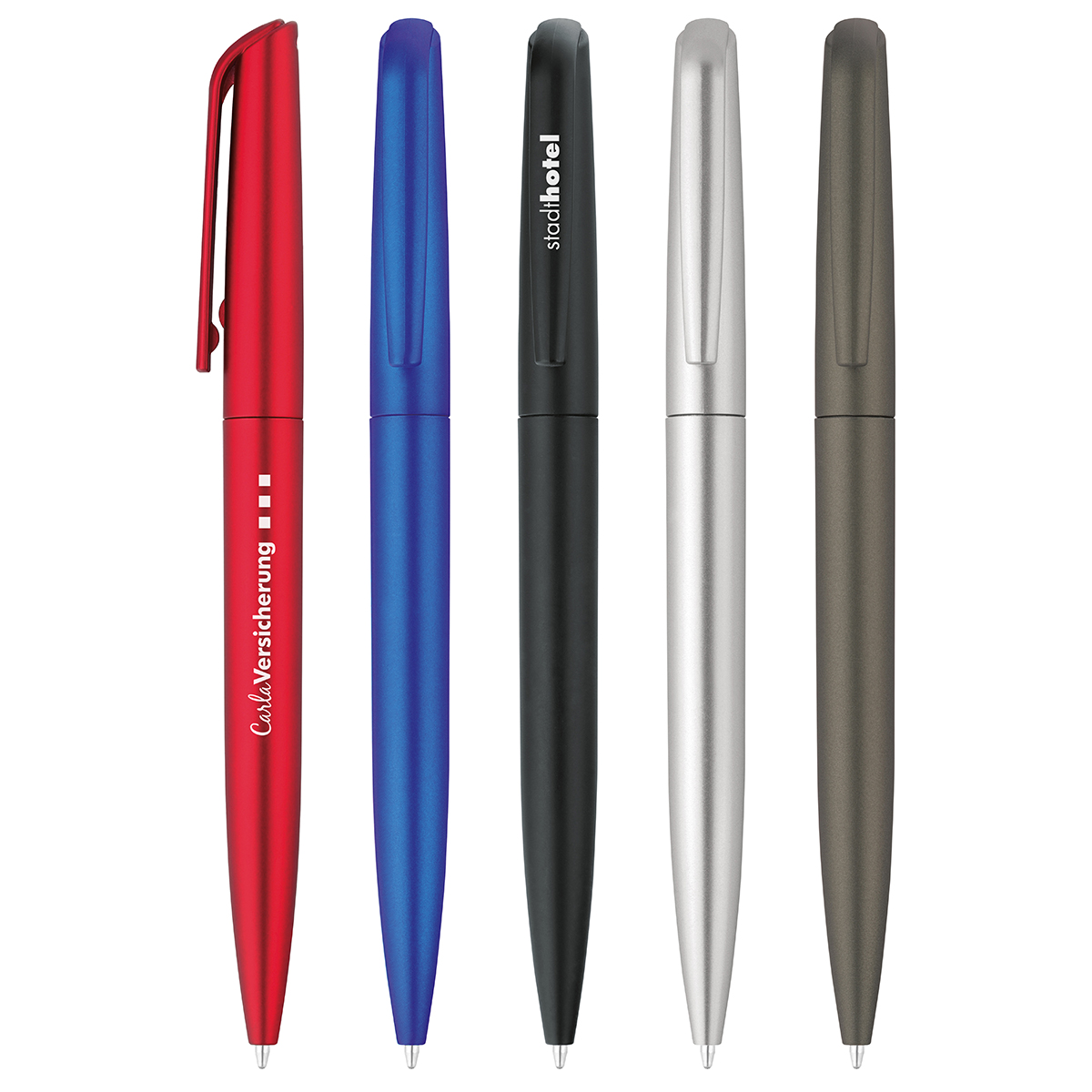 Farbiger Kugelschreiber aus Kunststoff, schwarzschreibend.Maße: ø10×138 mmSchreibgerät-Typ: KugelschreiberSchreibgerät-Mechanik: DruckmechanikSchreibfarbe: SchwarzMinentyp: Normale MineLinienstärke: 1 mmMaterial: KunststoffVeredelungsposition 1: Korpus - rechts vom ClipTechnologie: TampondruckMaximale Farben: 4Durchmesser: 0Druckcode: P0Technologie: TampondruckMaximale Farben: 1Durchmesser: 0Druckcode: P1Technologie: UV LED DruckDurchmesser: 0Druckcode: UVAVeredelungsposition 2: Korpus - links vom ClipTechnologie: TampondruckMaximale Farben: 4Durchmesser: 0Druckcode: P0Technologie: TampondruckMaximale Farben: 1Durchmesser: 0Druckcode: P1Technologie: UV LED DruckDurchmesser: 0Druckcode: UVAVeredelungsposition 3: KlipTechnologie: TampondruckMaximale Farben: 4Durchmesser: 0Druckcode: P0Veredelungsposition 4: Korpus - in Verlängerung vom ClipTechnologie: TampondruckMaximale Farben: 4Durchmesser: 0Druckcode: P0
