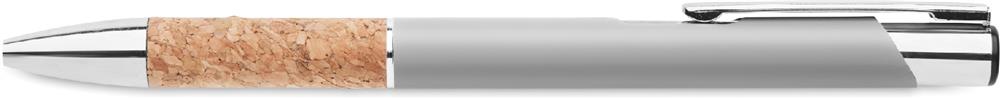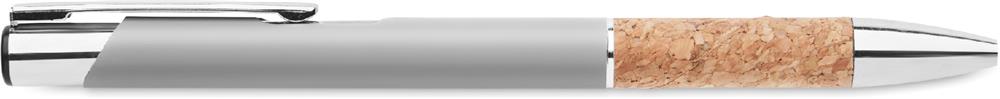 Druckkugelschreiber. Aluminium mit Griffteil aus Kork. Blaue Tinte.