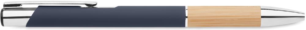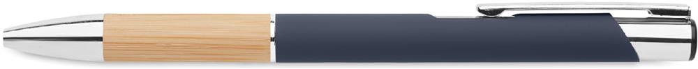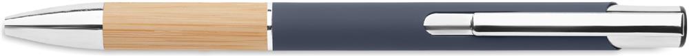 Druckkugelschreiber. Aluminium mit Griffteil aus Bambus. Blaue Tinte.