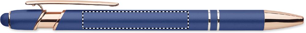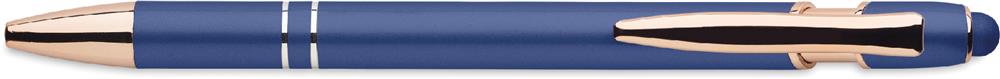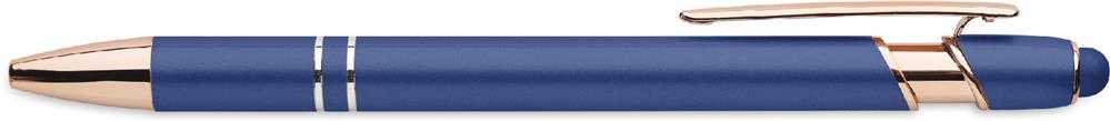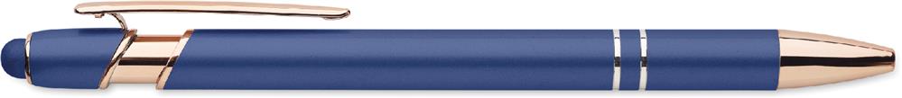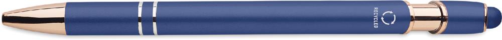 Druckkugelschreiber mit Stylus aus recyceltem Aluminium mit rosé goldenen Details. Blaue Tinte.