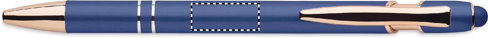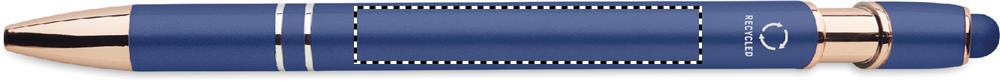 Druckkugelschreiber mit Stylus aus recyceltem Aluminium mit rosé goldenen Details. Blaue Tinte.Material: Recyceltes AluminiumMaße: Ø1x14,3 cmGewicht: 0.018 kgVeredelung: Bestickung, Bedruckung, BeflockungHandling/Farbcodes: Z/03, 04, 06, 15, 95Druckposition: CLIP RIGHT HANDEDDruckmaße: 50 x 8 mmDrucktechniken: L2, P4Druckposition: CLIP LEFT HANDEDDruckmaße: 50 x 8 mmDrucktechniken: L2, P4Druckposition: OPPOSITE THE CLIPDruckmaße: 50 x 8 mmDrucktechniken: L2, P4Druckposition: IN LINE WITH CLIPDruckmaße: 20 x 8 mmDrucktechniken: L2, P4