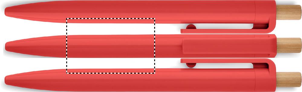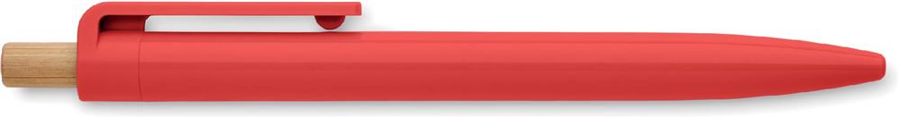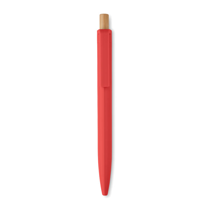 Druckkugelschreiber aus recyceltem ABS. Drücker aus Bambus. Blaue Tinte.
