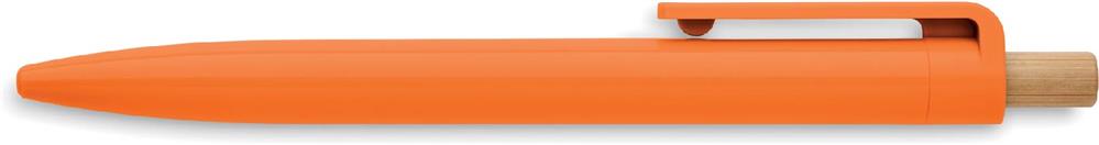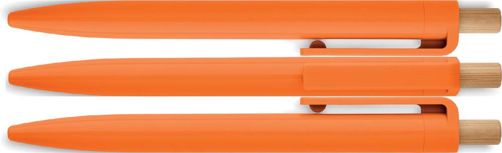 Druckkugelschreiber aus recyceltem ABS. Drücker aus Bambus. Blaue Tinte.
