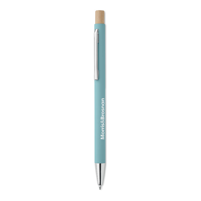 Druckkugelschreiber aus recyceltem Aluminium mit Druckknopf aus Bambus. Silberne Spitze und Clip. Blaue Tinte.Material: Recyceltes AluminiumMaße: Ø0,9x13,8 cmGewicht: 0.013 kgVeredelung: Bestickung, Bedruckung, BeflockungHandling/Farbcodes: Z/03, 04, 06, 15, 66, 77Druckposition: BARREL RIGHT HANDEDDruckmaße: 80 x 7 mmDrucktechniken: L2Druckposition: BARREL LEFT HANDEDDruckmaße: 80 x 7 mmDrucktechniken: L2Druckposition: OPPOSITE THE CLIPDruckmaße: 80 x 7 mmDrucktechniken: L2Druckposition: IN LINE WITH CLIPDruckmaße: 40 x 7 mmDrucktechniken: L2