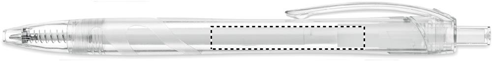 Druckkugelschreiber in RPET. Blaue Tinte.Material: RPETMaße: 14,5x1,1x1,5 cmGewicht: 0.01 kgVeredelung: Bestickung, Bedruckung, BeflockungHandling/Farbcodes: /03, 04, 05, 09, 10, 22Druckposition: BARREL RIGHT HANDEDDruckmaße: 45 x 7 mmDrucktechniken: P2Druckposition: BARREL LEFT HANDEDDruckmaße: 45 x 7 mmDrucktechniken: P2