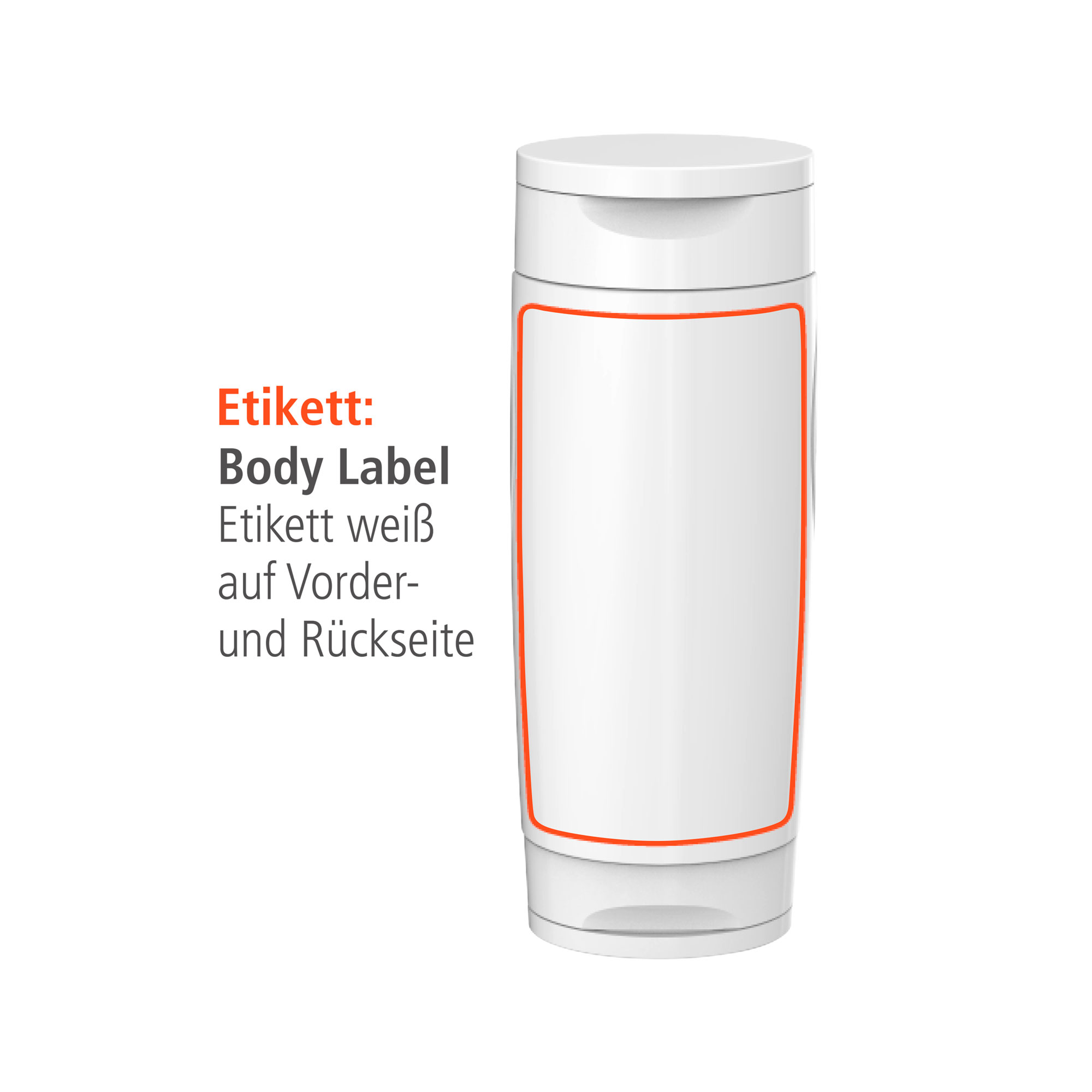 Bedruckung: Weißes Etikett auf Vorder- und Rückseite