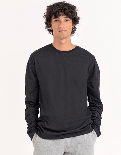 100% Bio-BaumwolleSingle-JerseyRipp-KragenNackenbandSeitennähte ? nicht-röhrenförmiger BodySaum und Ärmel mit Zwillingsnadel-DetailEingesetzte ÄrmelRundhalsausschnittModische PassformLange ÄrmelGrößenetikett nur für einfaches RebrandingMaterial: 100% BaumwolleGrammatur: 150 g/m²Gewicht: 0.165Hergestellt nach: Bio-Baumwolle, Oeko-Tex 100, VeganVeredelung: Bestickung, Bedruckung, Beflockung