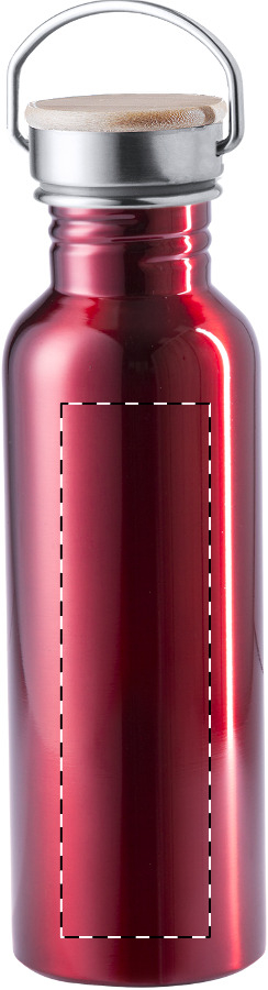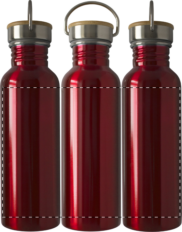 Farbige Edelstahl-Trinkflasche mit Tragedeckel aus Bambus. Füllmenge: 800 ml.