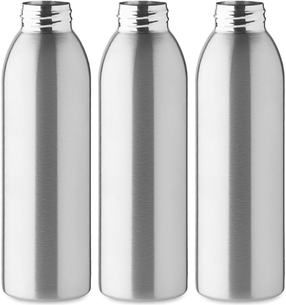 Einwandige Trinkflasche aus Edelstahl mit PP-Deckel und Silikonaufhänger. Füllmenge: 650 ml. Da der einwandige Trinkflasche die Hitze nach außen leiten kann, kann der Artikel heiß werden.