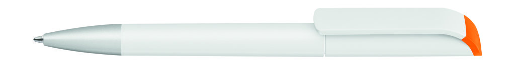 Drehkugelschreiber mit gedeckt mattem Gehäuse in weiß, farbig glänzendem Stopfen und Spitze silber matt.Druckbereich: Auf dem Clip 35mm x 8mm Siebdruck (S), in Clipverlängerung 40mm x 24mm Siebdruck (S), gegenüber vom Clip 40mm x 24mm Siebdruck (S), seitlich vom Clip 40mm x 24mm Siebdruck (S), auf dem Stopfen 8mm x 8mm Tampondruck (T), auf dem Clip 40mm x 10mm Digitaldruck (HD), auf dem Clip 40mm x 10mm Reliefdruck (HD)