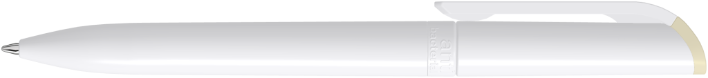 Drehkugelschreiber mit antibakteriell wirkendem Kunststoffgehäuse in gedeckt glänzend weiß mit farbigem Stopfen. Der nach ISO 22196:2011 geprüfte antimikrobielle Zusatz aus Silberionen verleiht dem Kunststoff eine antibakterielle Wirkung, die eine Haftung und Ansiedlung von Bakterien oder Krankheitserregern auf der Oberfläche des Schreibgerätes um 99,99% verringert. Der verarbeitete Kunststoff ist nicht nur antibakteriell, sondern auch schadstofffrei und umweltverträglich und entspricht den europäischen Lebensmittelrichtlinien, sowie der amerikanischen FDA.