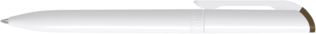 Drehkugelschreiber mit antibakteriell wirkendem Kunststoffgehäuse in gedeckt glänzend weiß mit farbigem Stopfen. Der nach ISO 22196:2011 geprüfte antimikrobielle Zusatz aus Silberionen verleiht dem Kunststoff eine antibakterielle Wirkung, die eine Haftung und Ansiedlung von Bakterien oder Krankheitserregern auf der Oberfläche des Schreibgerätes um 99,99% verringert. Der verarbeitete Kunststoff ist nicht nur antibakteriell, sondern auch schadstofffrei und umweltverträglich und entspricht den europäischen Lebensmittelrichtlinien, sowie der amerikanischen FDA.Druckbereich: Auf dem Clip 35mm x 8mm Siebdruck (S), in Clipverlängerung 40mm x 20mm Siebdruck (S), gegenüber vom Clip 40mm x 20mm Siebdruck (S), seitlich vom Clip 40mm x 20mm Siebdruck (S), auf dem Stopfen 8mm x 8mm Tampondruck Sonderformat (TT), auf dem Clip 40mm x 10mm Digitaldruck (HD), auf dem Clip 40mm x 10mm Reliefdruck (HD)