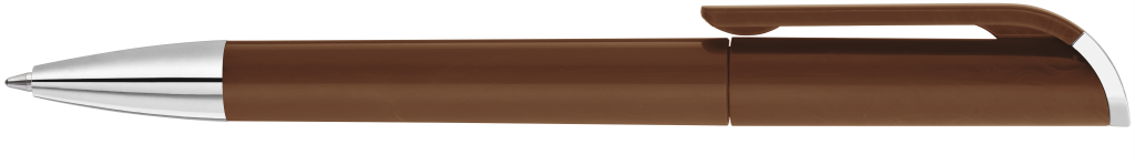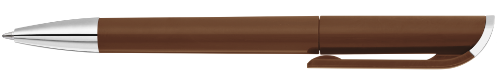 Drehkugelschreiber mit gedeckt glänzendem Gehäuse, Stopfen und Spitze glanzverchromt.Druckbereich: Auf dem Clip 35mm x 8mm Siebdruck (S), in Clipverlängerung 40mm x 24mm Siebdruck (S), gegenüber vom Clip 40mm x 24mm Siebdruck (S), seitlich vom Clip 40mm x 24mm Siebdruck (S), auf dem Stopfen 8mm x 8mm Tampondruck (T), auf dem Clip 40mm x 10mm Digitaldruck (HD), auf dem Clip 40mm x 10mm Reliefdruck (HD)