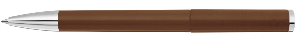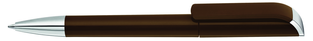 Drehkugelschreiber mit gedeckt glänzendem Gehäuse, Stopfen und Spitze glanzverchromt.