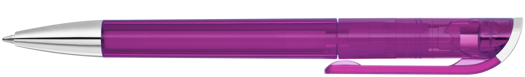 Drehkugelschreiber mit transparent glänzendem Gehäuse, Stopfen und Spitze glanzverchromt.Druckbereich: Auf dem Clip 35mm x 8mm Siebdruck (S), in Clipverlängerung 40mm x 24mm Siebdruck (S), gegenüber vom Clip 40mm x 24mm Siebdruck (S), seitlich vom Clip 40mm x 24mm Siebdruck (S), auf dem Stopfen 8mm x 8mm Tampondruck (T), auf dem Clip 40mm x 10mm Digitaldruck (HD), auf dem Clip 40mm x 10mm Reliefdruck (HD)