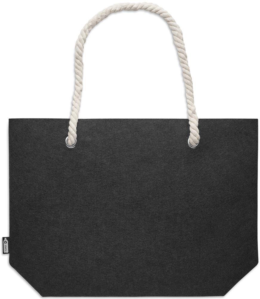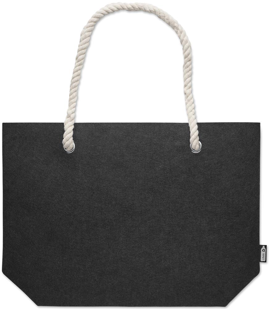 Einkaufs- oder Strandtasche aus RPET-Filz mit Kordelgriff. Filzstärke: 2 mm.
