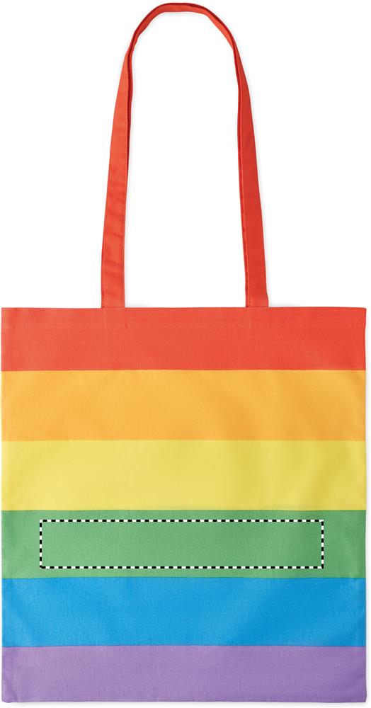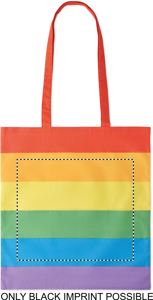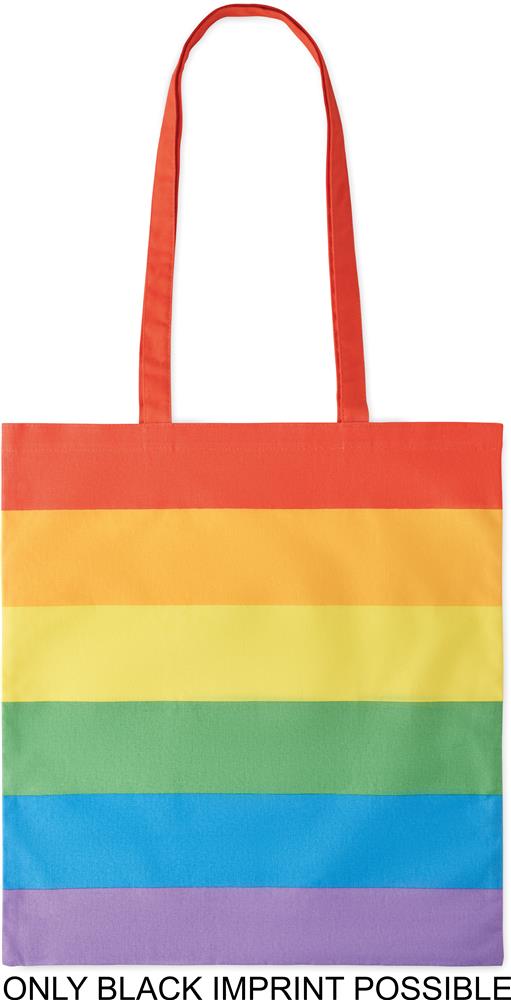 Regenbogenfarbige Einkaufstasche aus Baumwolle mit langen Tragegriffen. 200 g/m².