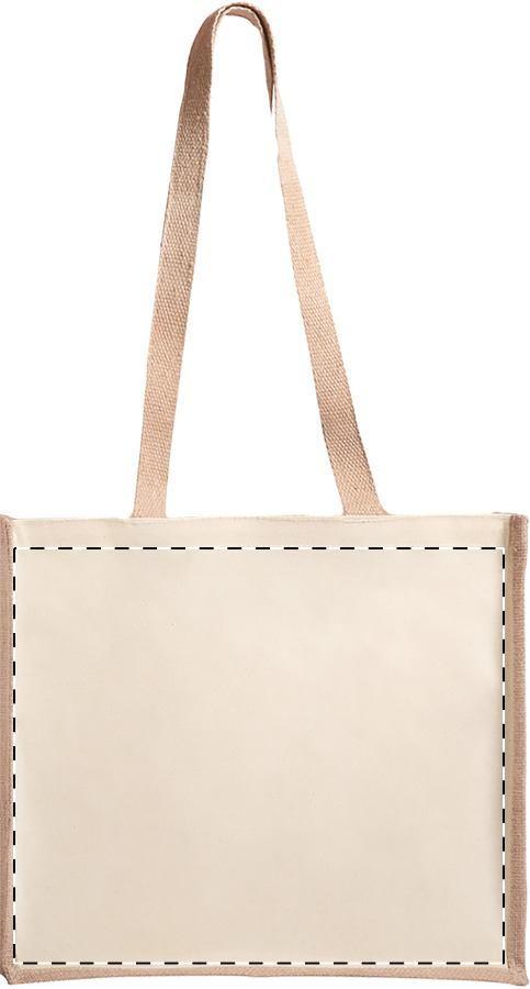 Einkaufstasche mit langen Henkeln. Material Jute und Baumwolle, laminiert.