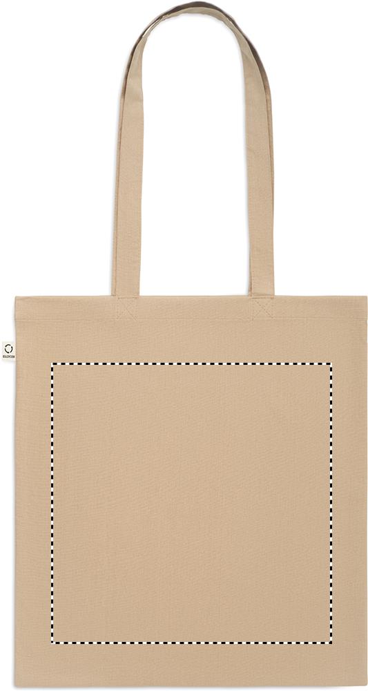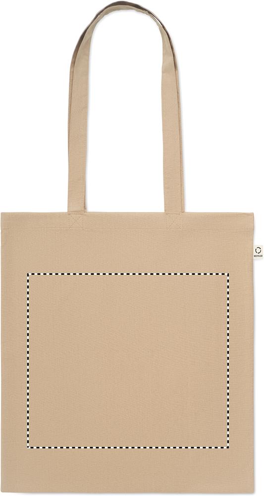 Einkaufstasche aus recycelter Post-Consumer-Baumwolle (70 % recycelte Baumwolle und 30 % RPET) mit langen Tragegriffen. 140 g/m². Artikel kann nach dem Bedrucken schrumpfen.Material: Recycelte BaumwolleMaße: 38x42 cmGewicht: 0.06 kgVeredelung: Bestickung, Bedruckung, BeflockungHandling/Farbcodes: /03, 04, 05, 06, 07, 15, 20, 37, 39, 60Druckposition: FRONTDruckmaße: 300 x 300 mmDrucktechniken: S1, T1, TRDruckposition: BACKDruckmaße: 300 x 300 mmDrucktechniken: T1, TRDruckposition: EMBROIDERYDruckmaße: 280 x 230 mmDrucktechniken: EDruckposition: FRONT TD1Druckmaße: 300 x 260 mmDrucktechniken: TD1Druckposition: BACK TD1Druckmaße: 300 x 260 mmDrucktechniken: TD1