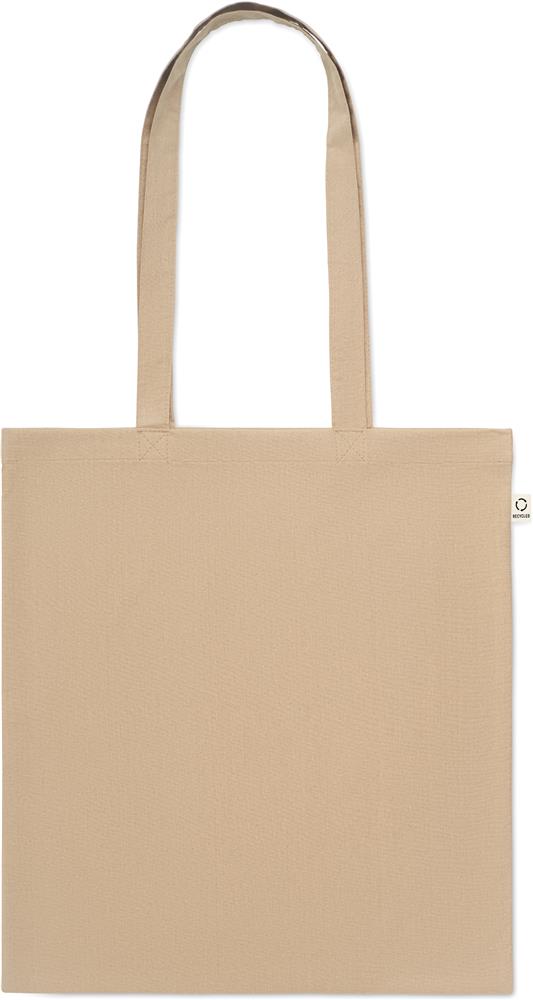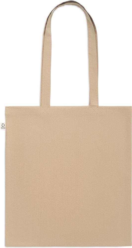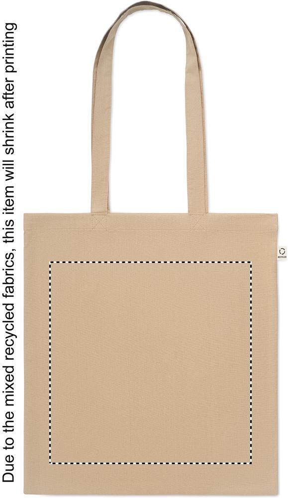 Einkaufstasche aus recycelter Post-Consumer-Baumwolle (70 % recycelte Baumwolle und 30 % RPET) mit langen Tragegriffen. 140 g/m². Artikel kann nach dem Bedrucken schrumpfen.