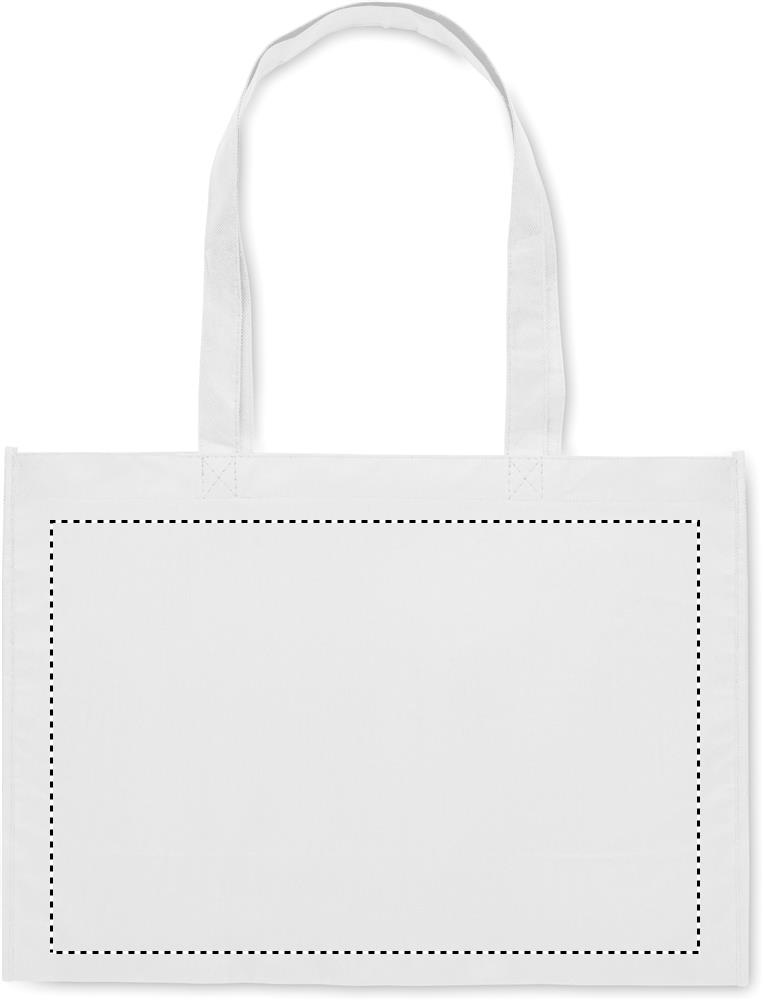 Individuelle Einkaufstasche aus RPET Non-Woven (80 g/m²) mit Seitenfalte und langen Henkeln. Der Preis ist inkl. vollflächigem Sublimationsdruck auf beiden Seiten. Mindestmenge: 25 Stk. Mit RPET-Label.Maße: 340×290×145 mmTaschenvolumen/-kapazität: 14.3 lMaterial: RPET Non-WovenGewicht: 80 g/m2Veredelungsposition 1: Komplette OberflächeTechnologie: Free Printing Sublimationsdruck - EinzelnamenDurchmesser: 0Druckcode: FP-NSUTechnologie: Free Printing - SublimationsdruckDurchmesser: 0Druckcode: FP-SUFarbe: weiß