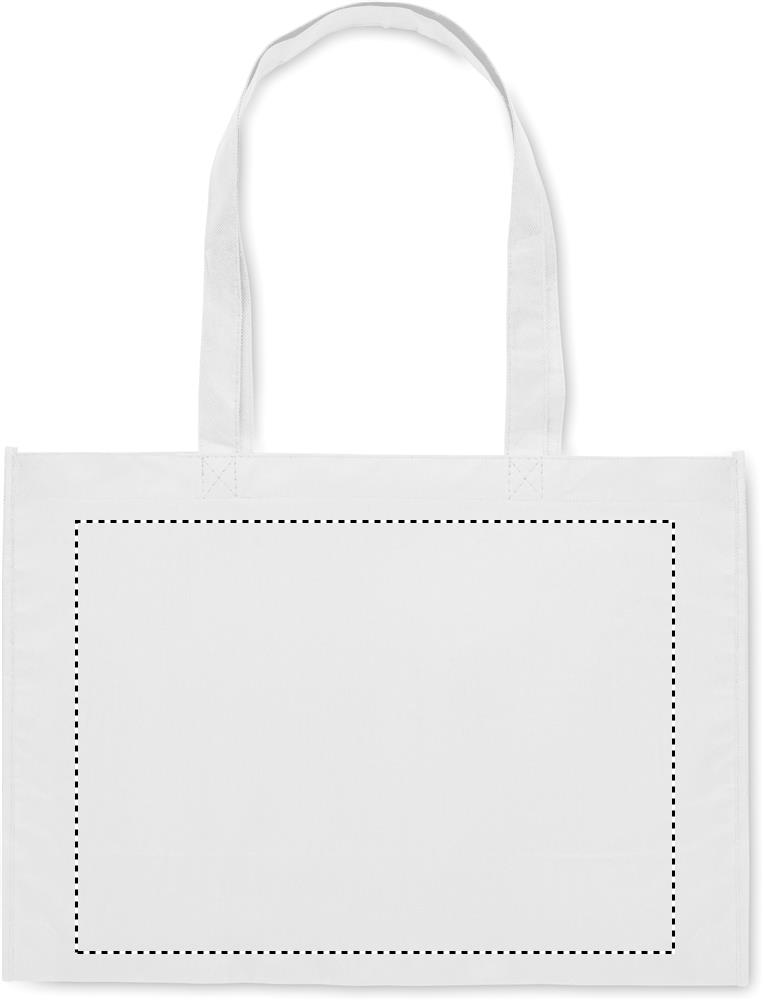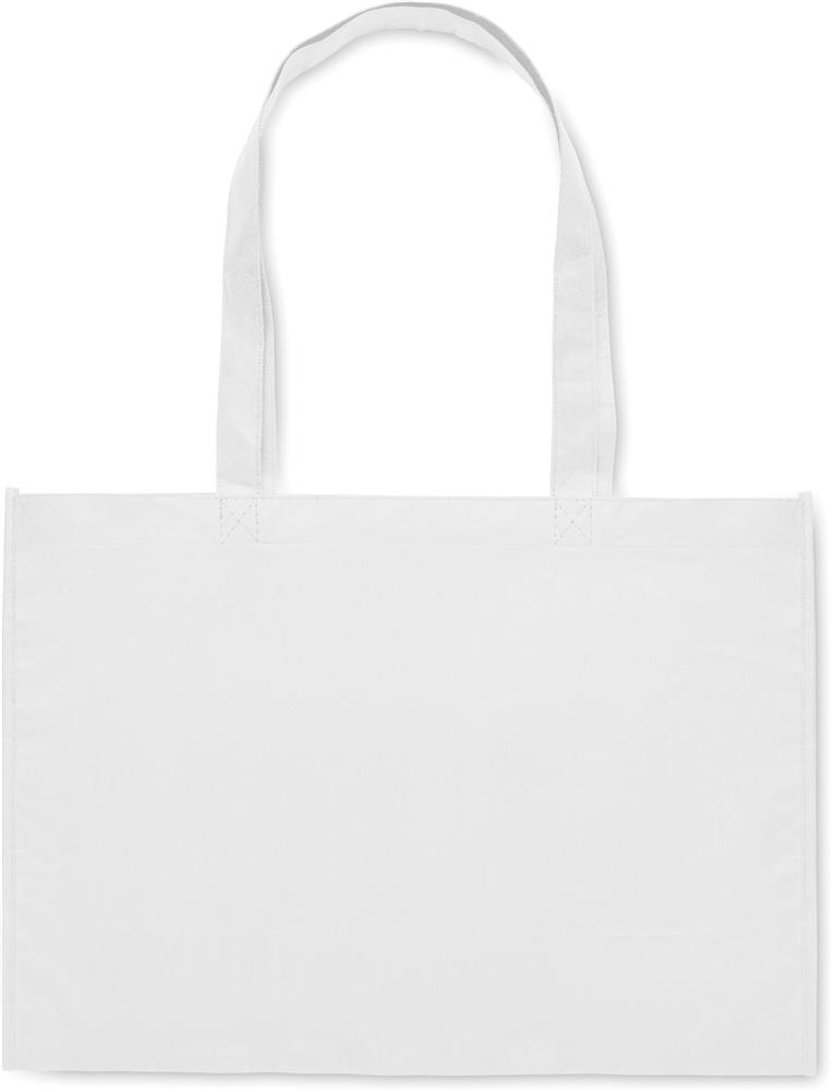 Einkaufs- oder Strandtasche aus RPET-Non Woven mit Seitenfalz und langen Tragegriffen. 80 g/m².