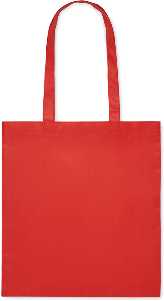Einkaufs- oder Strandtasche aus RPET-Non Woven mit Seitenfalz und langen Tragegriffen. 80 g/m².
