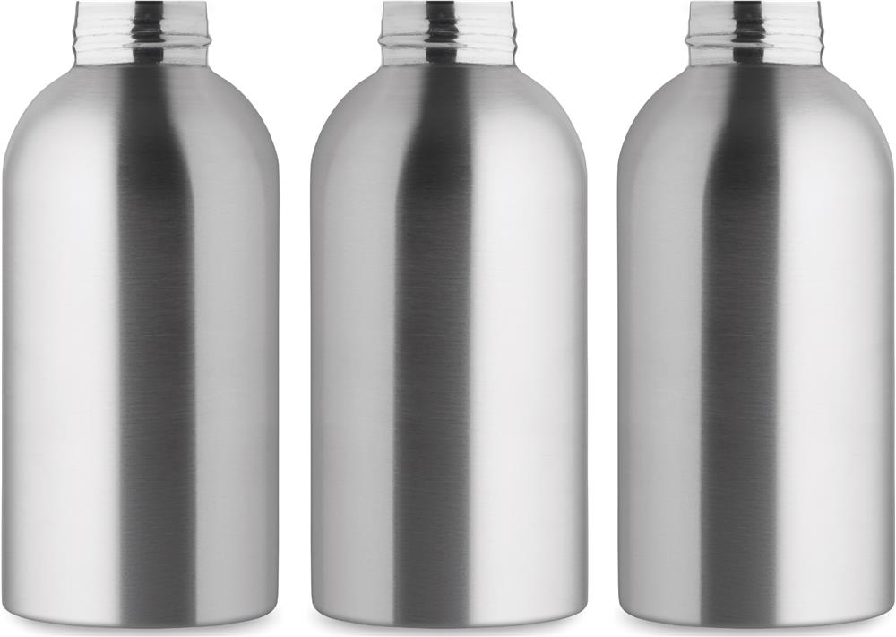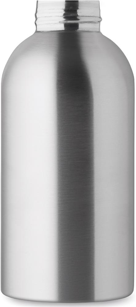 Einwandige Flasche aus recyceltem Edelstahl (90 % recycelter Edelstahl und 10 % Edelstahl). Auslaufsicher. Füllmenge 500 ml. Da der einwandige Flasche die Hitze nach Außen leiten kann, kann der Artikel heiß werden.
