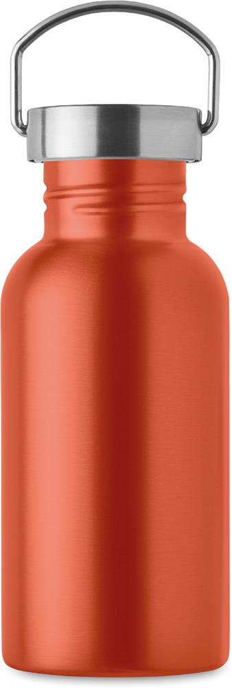 Einwandige Flasche aus recyceltem Edelstahl (90 % recycelter Edelstahl und 10 % Edelstahl) mit Henkel. Auslaufsicher. Füllmenge: 500 ml.