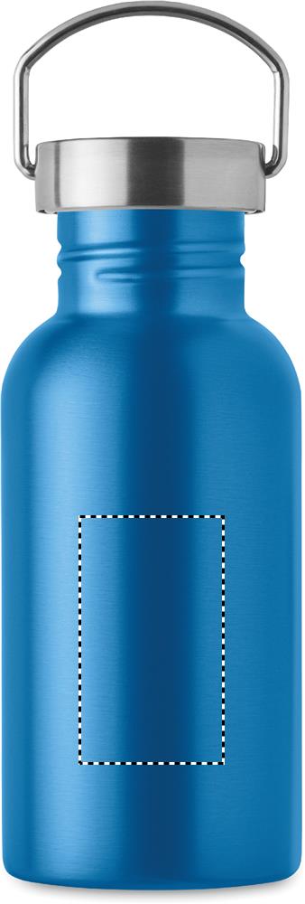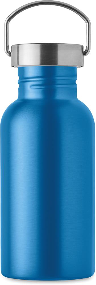Einwandige Flasche aus recyceltem Edelstahl (90 % recycelter Edelstahl und 10 % Edelstahl) mit Henkel. Auslaufsicher. Füllmenge: 500 ml.