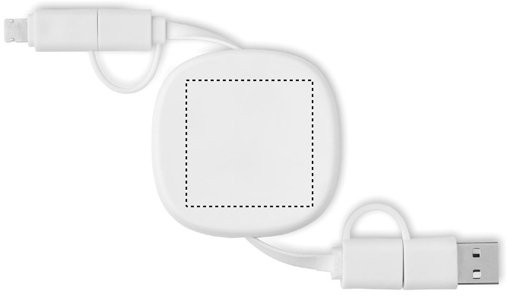 Einziehbares Ladekabel 60W. Gehäuse aus recyceltem ABS. Eingang: 2in1 Typ-C und Typ-A. Ausgang: Typ-C und Mikro-B (2 in 1 Pin). Kabellänge: 80 cm.Material: Recyceltes ABSMaße: 5,3x5,3x1,6 cmGewicht: 0.04 kgVeredelung: Bestickung, Bedruckung, BeflockungHandling/Farbcodes: B/03, 06Druckposition: TOPDruckmaße: 35 x 35 mmDrucktechniken: DL, P5, DO1Druckposition: PLUG SIDE 1Druckmaße: 10 x 5 mmDrucktechniken: P5Druckposition: PLUG SIDE 2Druckmaße: 10 x 5 mmDrucktechniken: P5