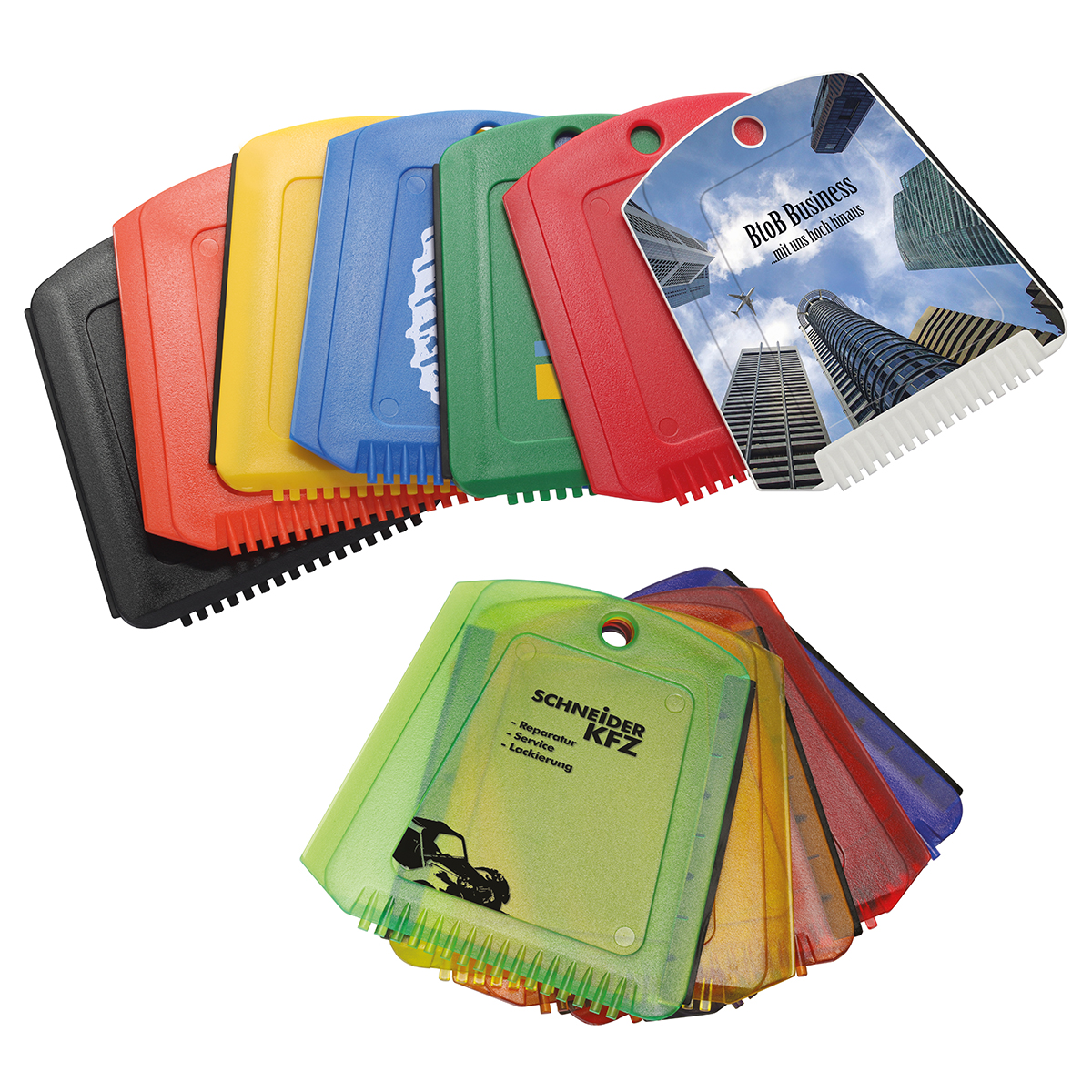 Zum Eisschaben und Eisbrechen, mit gummiertem Wasserabstreifer.Suchbegriffe: Eiskratzer, EisbrecherMaße: 120 x 120 x 4 mmGewicht: 36 gMaterial: PS, TPEVeredelung: Tampondruck, DigitaldruckDruckcodes: T/A (3), D/DAVeredelung 1------------Platzierung: Vorderseite (1)Druckfläche: 45 x 70 mmDruckart: TampondruckDruckgruppe, Druckcode: A, T/ADruckfarben max.: 3Veredelung 2------------Platzierung: Rückseite (2)Druckfläche: 45 x 70 mmDruckart: TampondruckDruckgruppe, Druckcode: A, T/ADruckfarben max.: 3Veredelung 3------------Platzierung: Vorderseite (1)Druckfläche: 114 x 115 mmDruckart: DigitaldruckDruckgruppe, Druckcode: DA, D/DAVeredelung 4------------Platzierung: Rückseite (2)Druckfläche: 114 x 115 mmDruckart: DigitaldruckDruckgruppe, Druckcode: DA, D/DA
