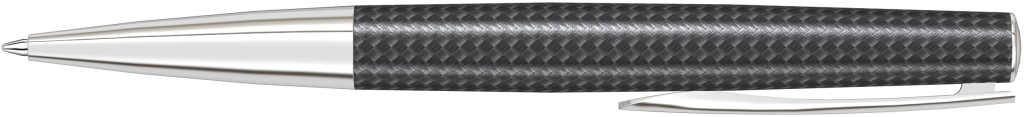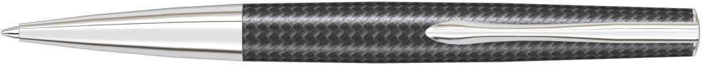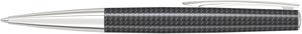 Metall-Drehkugelschreiber mit Schaft aus Carbonfaser in schwarz oder silber, gefederter Metallclip und schwere Metallspitze glanzverchromt bzw. Schaft aus Carbonfaser in schwarz, Metallclip und schwere Metallspitze schwarz matt lackiert und Softdrehmechanik.