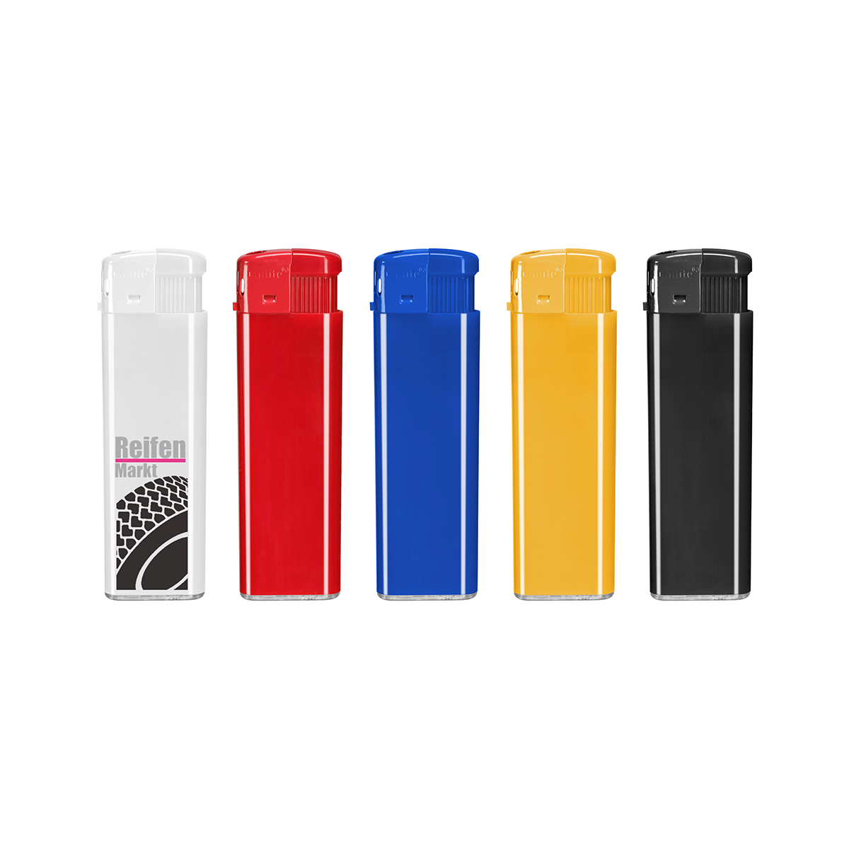 TOM® Elektronik-Feuerzeug nachfüllbarKorpus: Vollfarbe SchwarzKappe: Vollfarbe Schwarz - Normale Flamme - VE: 50er Einheit1.000er UmkartonMaterial: KunststoffMaße: 8,20 x 2,50 x 1,10 mm (H x B x L)Druckmaße: 1.3 x 5.2 cmGewicht: 18,10 g