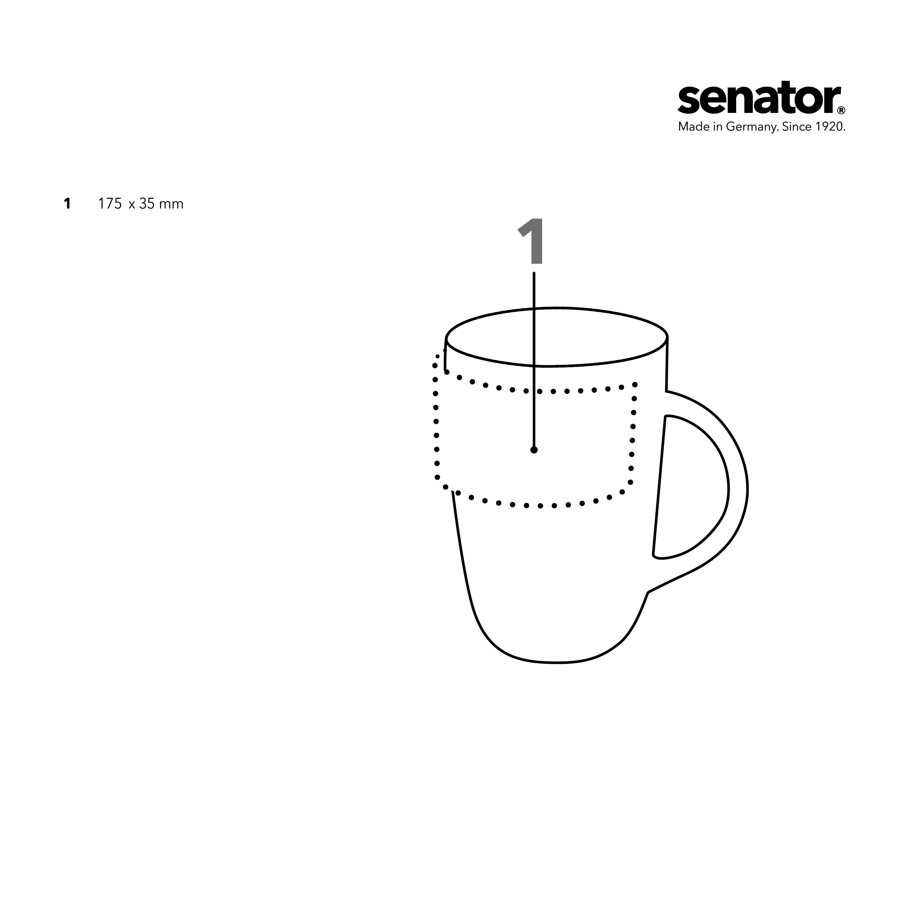 Perfekt für den nächsten Tee oder Kaffee. Der großzügige Henkel, der angenehm rundgeformte Trinkrand und die standfeste Form machen diese Tasse zu einem perfekten Alltags-Begleiter. Füllmenge: 0,35 Liter.Material: KunststoffMaße: 0 x 0 x 185 x Ø: 84,00 mmGewicht: 62 gDruckmöglichkeitenPosition 1: Links vom HenkelDruckart: TampondruckDruckgruppe: TAMCMaximale Farben: 5Durchmesser: 35 mmPosition 2: Rechts vom HenkelDruckart: TampondruckDruckgruppe: TAMCMaximale Farben: 5Durchmesser: 35 mmPosition 3: Gegenüber vom HenkelDruckart: TampondruckDruckgruppe: TAMCMaximale Farben: 5Durchmesser: 35 mm