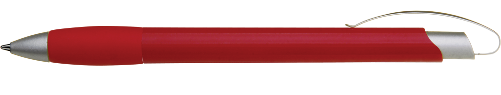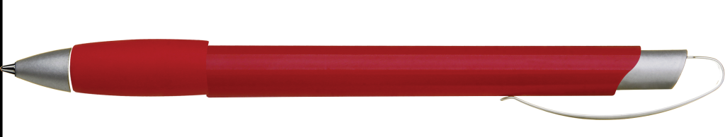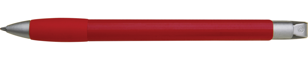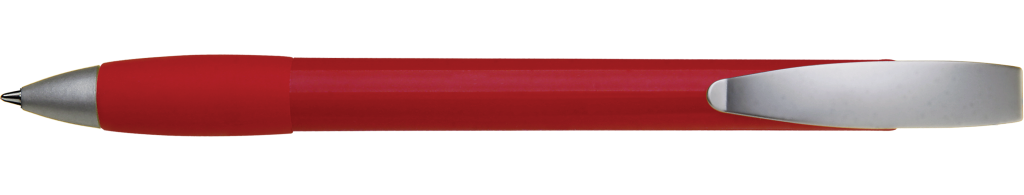 Druckkugelschreiber mit gedeckt glänzendem Gehäuse, Gummigriffzone, matt verchromtem Metallclipdrücker und Spitze matt silber.Druckbereich: In Clipverlängerung 35mm x 20mm Siebdruck (S), gegenüber vom Clip 60mm x 13mm Siebdruck (S), seitlich vom Clip 60mm x 13mm Siebdruck (S), auf dem Clip 20mm x 5mm Lasergravur (L), auf dem Clip 20mm x 5mm Tampondruck (MT), auf dem Clip 20mm x 5mm Einzelnamensgravur (EL)