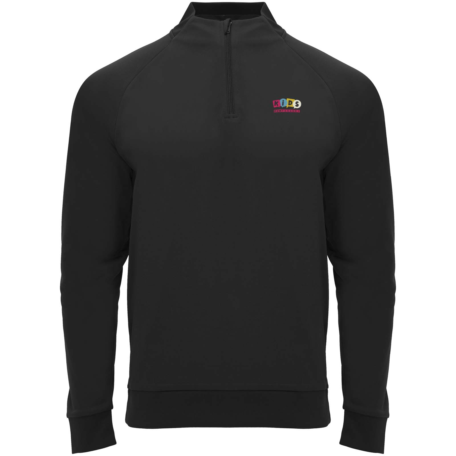 Sweatshirt aus Funktionsstoff mit Raglanärmeln und angerauter Innenseite. Stehkragen mit Half-Zip Reißverschluss und passenden verstärkten, verdeckten Nähten. 1x1-Rippstrick an Kragen, Ärmelbündchen und Saum. Abnehmbares Etikett. Sweatshirt passend zur Neapolis Hose. Besonderheiten:- Mit Reißverschluss: Ja- Geschlecht: Kinder- Ärmellänge: Lange Ärmel- OEKO-TEX®- SMETAMaterial: Mesh mit Cool Fit Finish 100% Polyester, 200 g/m2Grammatur: 200 g/m2Standard-Druck---------------Druckart: SiebdruckDruckposition: linke BrustDruckgröße: 50 x 60 mm mm (BxH)Druckfarben maximal: 5Zusätzliche Informationen: Schauen Sie bitte vor der Bestellung in die Roly Größentabelle. Roly folgt den spanischen Größen, die eine eher slim-fit Passform haben.Suchwörter: Sweatshirt, Sweater, Pullover, Pulli, Sweater, Funktionsshirt, Sport, Fitness, Bewegung, Kinder, Kids