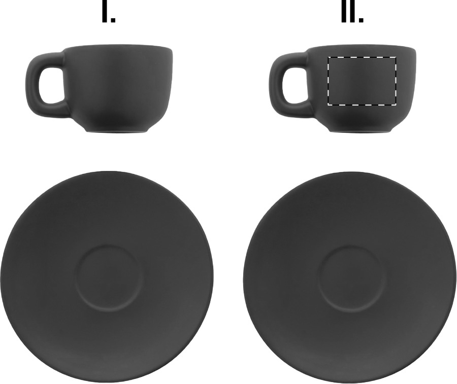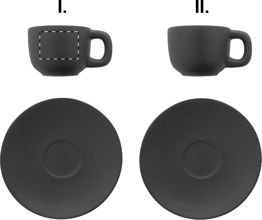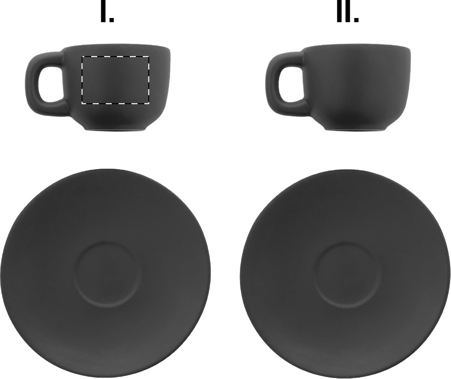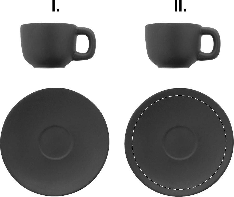 Hochwertiges Espressotassen-Set aus Keramik mit matter Außen- und glänzender Innenseite. Das Set besteht aus aus 2 Tassen (85 ml.) und 2 Untertassen. Verpackt in Kraftpapierbox.Maße: 130×130×87 mmFüllmenge: 85 mlSpülmaschinengeeignet: JaMikrowellenfest: JaMaterial: KeramikVeredelungsposition 1: Tasse 1 - für RechtshänderTechnologie: KeramikdruckMaximale Farben: 8Durchmesser: 0Druckcode: C2Technologie: TampondruckMaximale Farben: 2Durchmesser: 0Druckcode: P3Veredelungsposition 2: Tasse 2 - für RechtshänderTechnologie: KeramikdruckMaximale Farben: 8Durchmesser: 0Druckcode: C2Technologie: TampondruckMaximale Farben: 2Durchmesser: 0Druckcode: P3Veredelungsposition 3: Tasse 1 - für LinkshänderTechnologie: KeramikdruckMaximale Farben: 8Durchmesser: 0Druckcode: C2Technologie: TampondruckMaximale Farben: 2Durchmesser: 0Druckcode: P3Veredelungsposition 4: Tasse 2 - für LinkshänderTechnologie: KeramikdruckMaximale Farben: 8Durchmesser: 0Druckcode: C2Technologie: TampondruckMaximale Farben: 2Durchmesser: 0Druckcode: P3Veredelungsposition 5: Untertasse 1Technologie: KeramikdruckMaximale Farben: 8Durchmesser: 0Druckcode: C2Technologie: TampondruckMaximale Farben: 2Durchmesser: 0Druckcode: P3Veredelungsposition 6: Untertasse 2Technologie: KeramikdruckMaximale Farben: 8Durchmesser: 0Druckcode: C2Technologie: TampondruckMaximale Farben: 2Durchmesser: 0Druckcode: P3