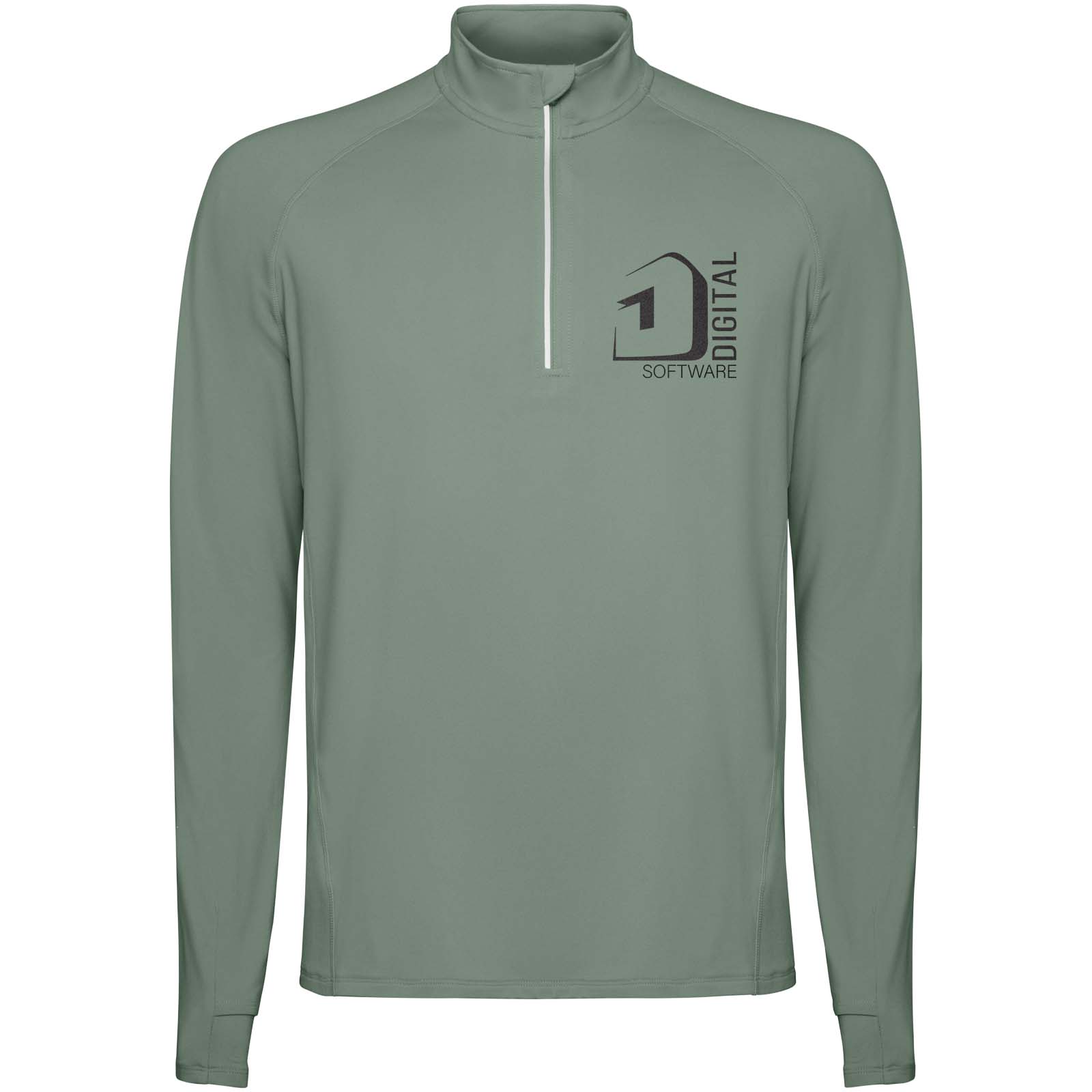 Langarm Funktions-Sweatshirt für Herren mit Raglanschnitt. Kragen mit halbem Reißverschluss und reflektierenden Details. Verstärkte Nahtabdeckungen. Ärmelbündchen mit Daumenöffnung. Reflektierende Details am Rücken. Rückensaum etwas länger als der Frontsaum. Warmes gebürstetes Innenmaterial.Besonderheiten:- Geschlecht: MännlichMaterial: Strick 88% Recyceltes Polyester, 12% Elastan, 200 g/m2Grammatur: 200 g/m2Standard-Druck---------------Druckart: TransferdruckDruckposition: linke BrustDruckgröße: 90 x 100 mm mm (BxH)Druckfarben maximal: 1Suchwörter: roly, Sweatshirt, Sweater, Pullover