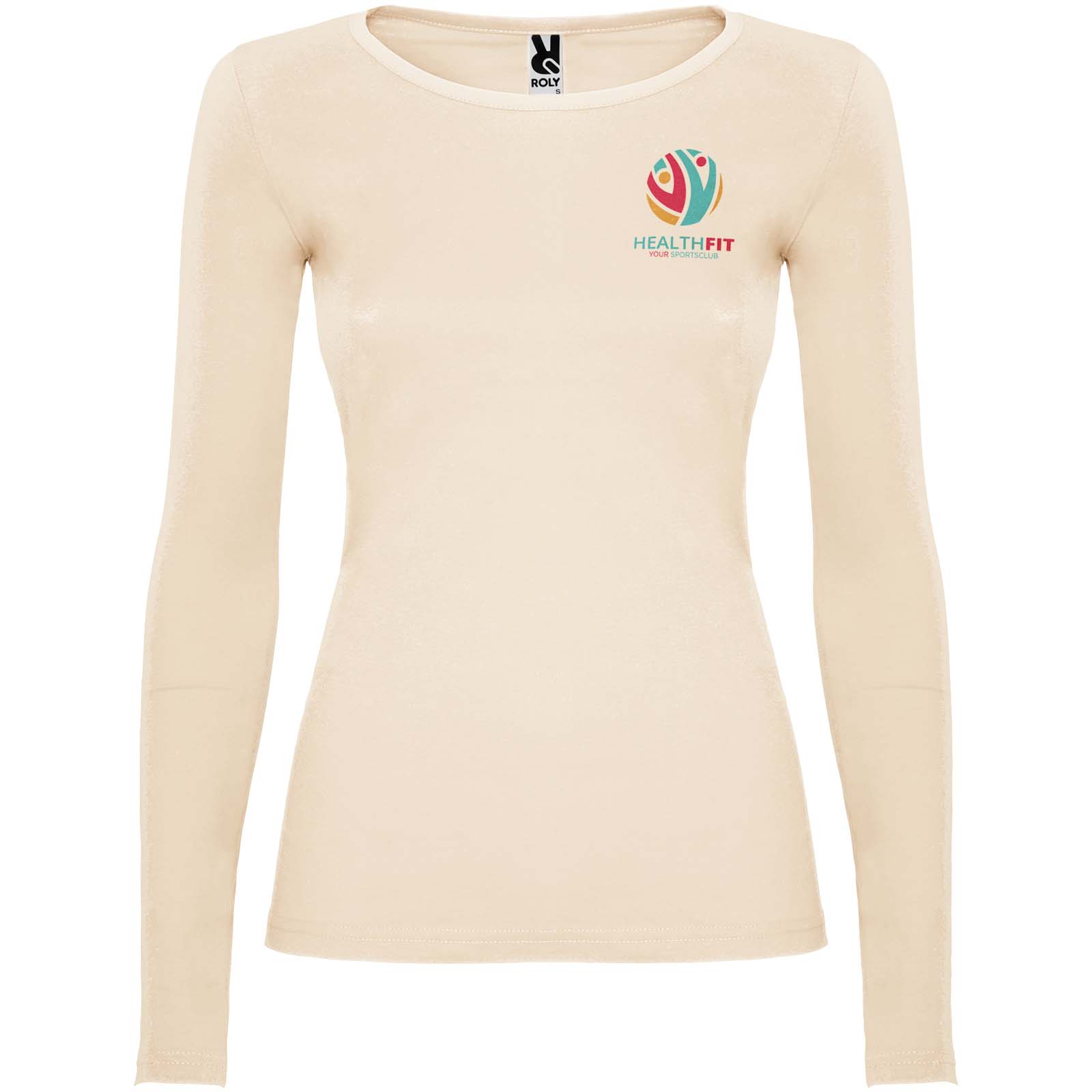Langärmeliges, halb tailliertes T-Shirt mit feinem Halsbündchen. Keine Ärmelbündchen. Seitennähte. Herausnehmbares Etikett.Besonderheiten:- Geschlecht: Weiblich- OEKO-TEX®- SMETAMaterial: Single jersey Strick 100% Baumwolle, 160 g/m2Grammatur: 160 g/m2Standard-Druck---------------Druckart: SiebdruckDruckposition: linke BrustDruckgröße: 100 x 100 mm mm (BxH)Druckfarben maximal: 5Zusätzliche Informationen: Schauen Sie bitte vor der Bestellung in die Roly Größentabelle. Roly folgt den spanischen Größen, die eine eher slim-fit Passform haben.Suchwörter: roly,