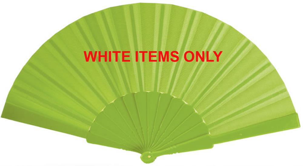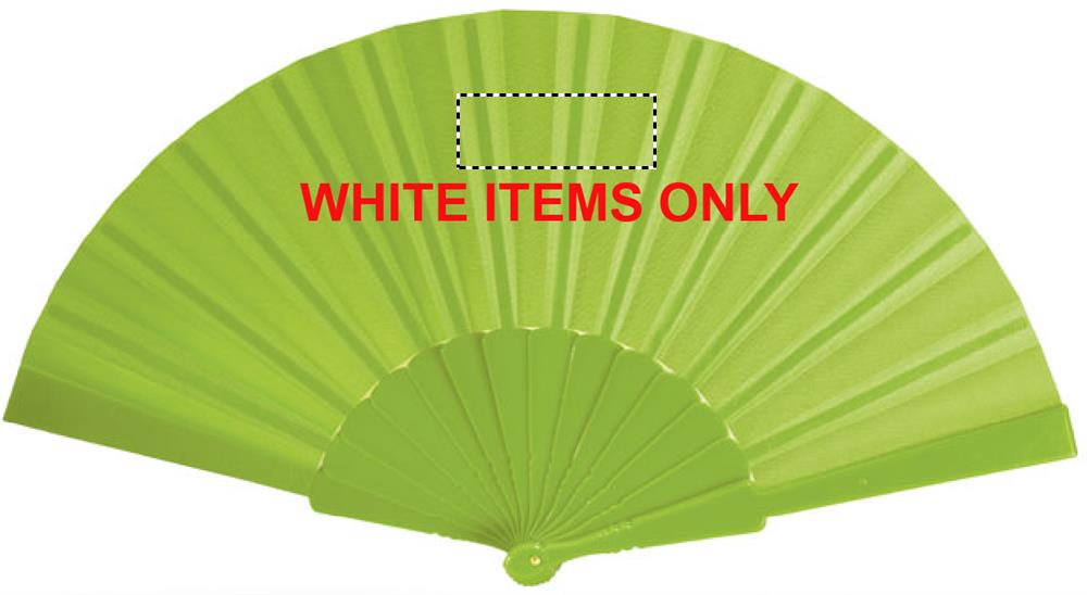 Bunter Fächer. Das perfekte Give away an heißen Sommertagen.Material: ABSMaße: 23x43x2,3 cmGewicht: 0.054 kgVeredelung: Bestickung, Bedruckung, BeflockungHandling/Farbcodes: B/03, 04, 05, 06, 10, 38, 48Druckposition: FRONT ADruckmaße: 30 x 7 mmDrucktechniken: P4Druckposition: FRONT BDruckmaße: 50 x 10 mmDrucktechniken: P4Druckposition: BACK ADruckmaße: 30 x 7 mmDrucktechniken: P4Druckposition: BACK BDruckmaße: 50 x 10 mmDrucktechniken: P4Druckposition: FRONT ON WHITEDruckmaße: 80 x 30 mmDrucktechniken: P4