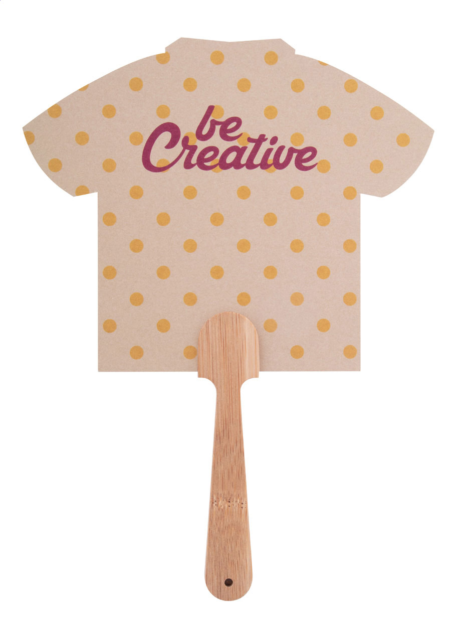 Individueller Fächer mit Bambusgriff und Kraftpapier. Der Preis ist inkl. Digitaldruck auf beiden Seiten. Mindestmenge: 100 Stk.