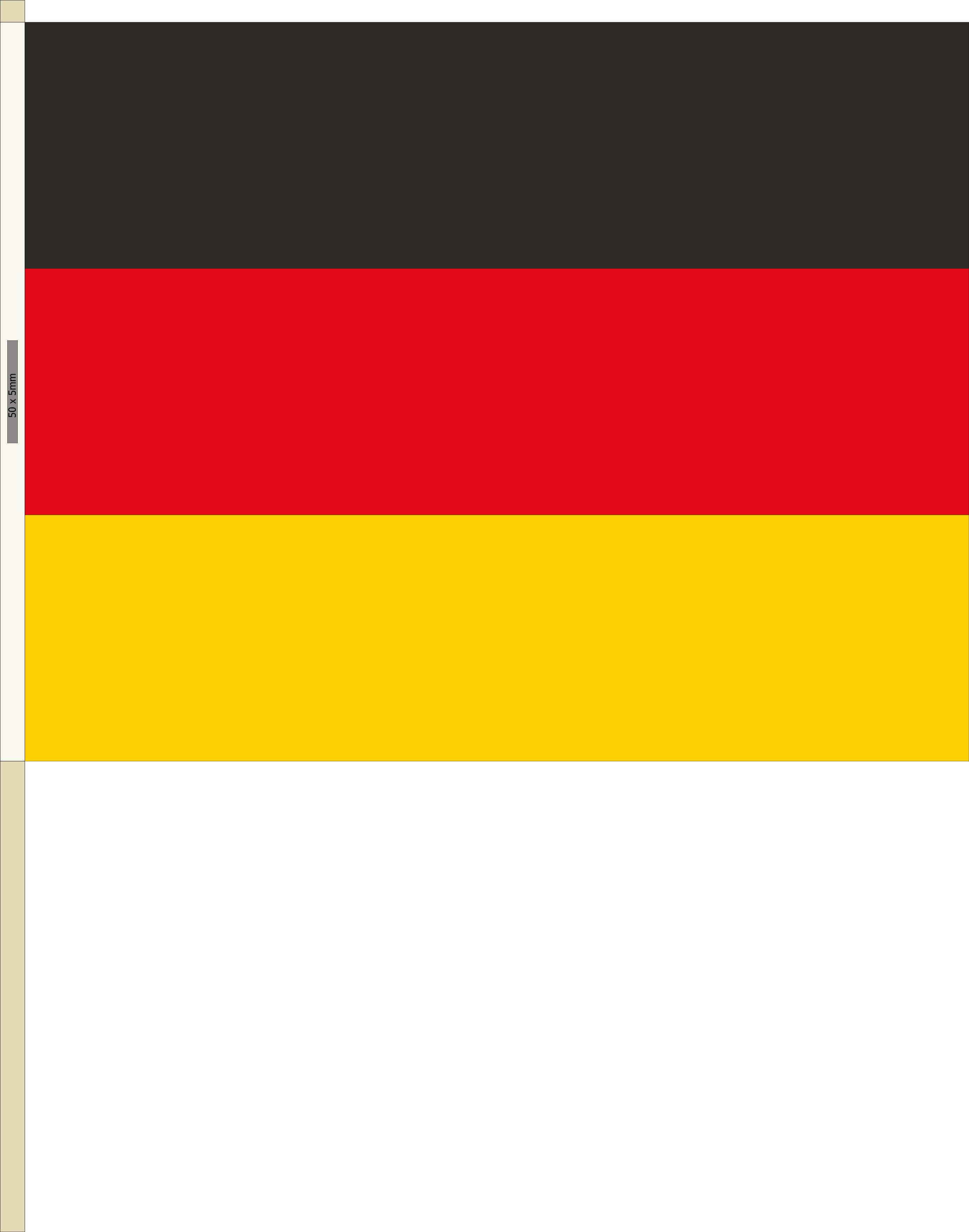 Deutschland-Fahne an einem Holzstiel. Stab: 60 cm.