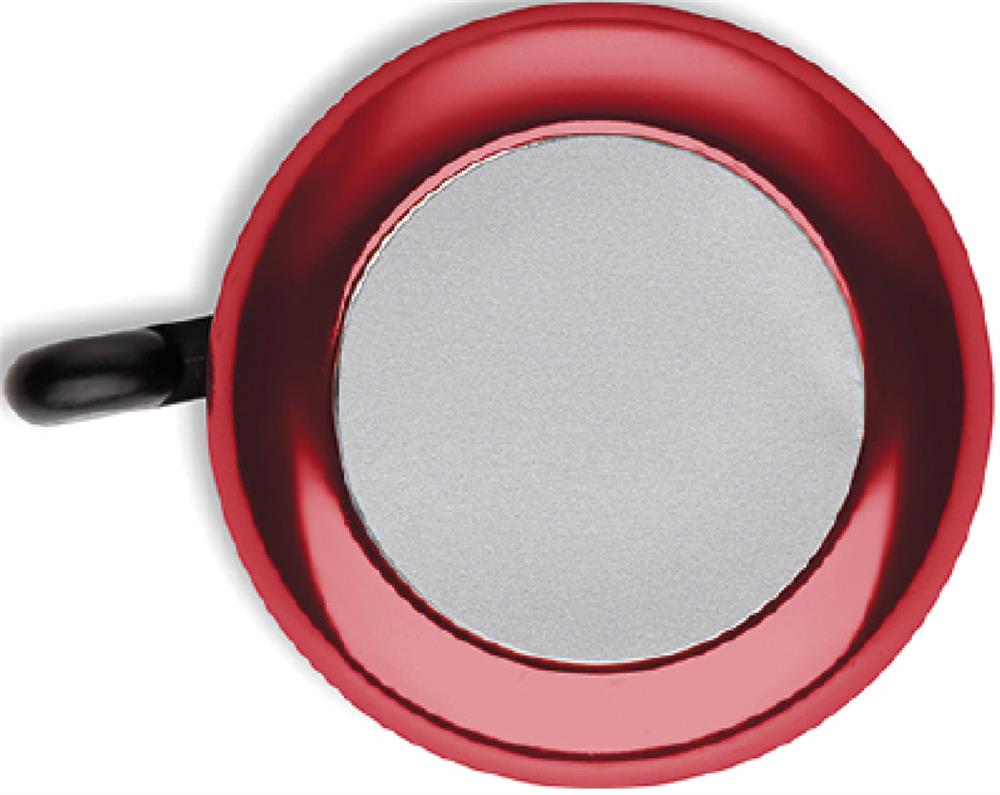 Fahrradklingel. Oberseite aus Aluminium mit eingelassenem silbernen Papierklebepunkt. Unterseite aus ABS.Material: AluminiumMaße: Ø5,5x5 cmGewicht: 0.034 kgVeredelung: Bestickung, Bedruckung, BeflockungHandling/Farbcodes: B/03, 04, 05, 17Druckposition: TOP PADDruckmaße: 30 x 30 mmDrucktechniken: P4Druckposition: TOP OTHERDruckmaße: 35 x 35 mmDrucktechniken: DL, DO1
