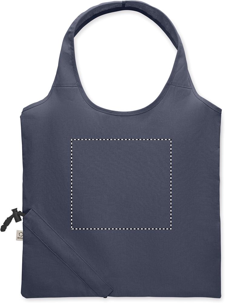 Faltbare Einkaufstasche aus recycelter Pre-Consumer-Baumwolle (70% recycelte Baumwolle und 30% RPET). 140 g/m². Artikel kann nach dem Bedrucken schrumpfen.
