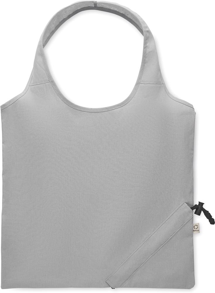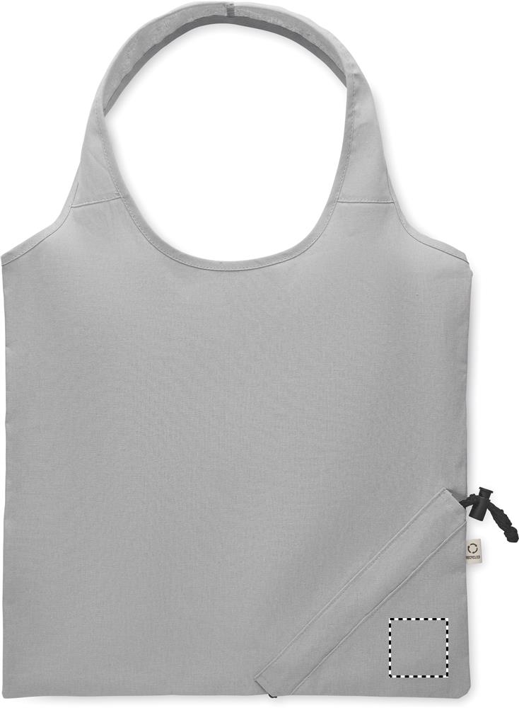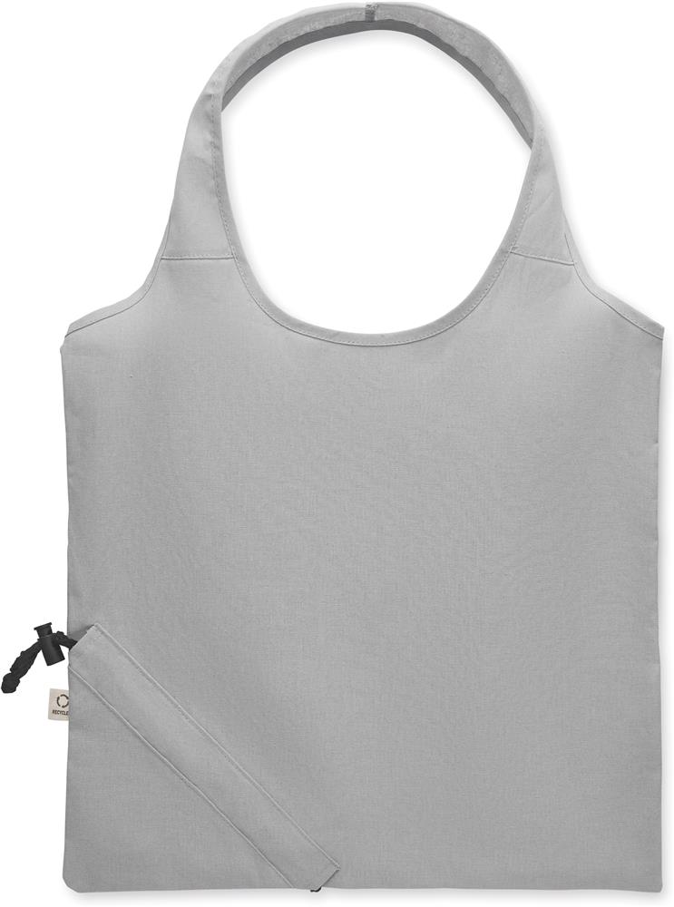 Faltbare Einkaufstasche aus recycelter Pre-Consumer-Baumwolle (70% recycelte Baumwolle und 30% RPET). 140 g/m². Artikel kann nach dem Bedrucken schrumpfen.