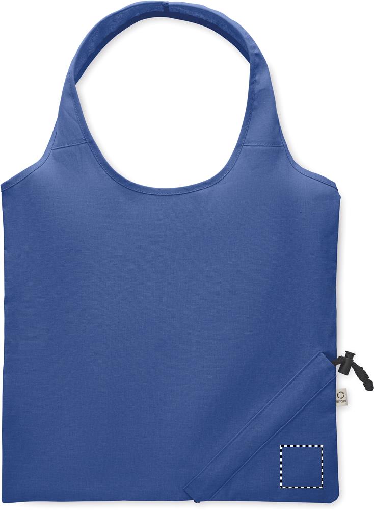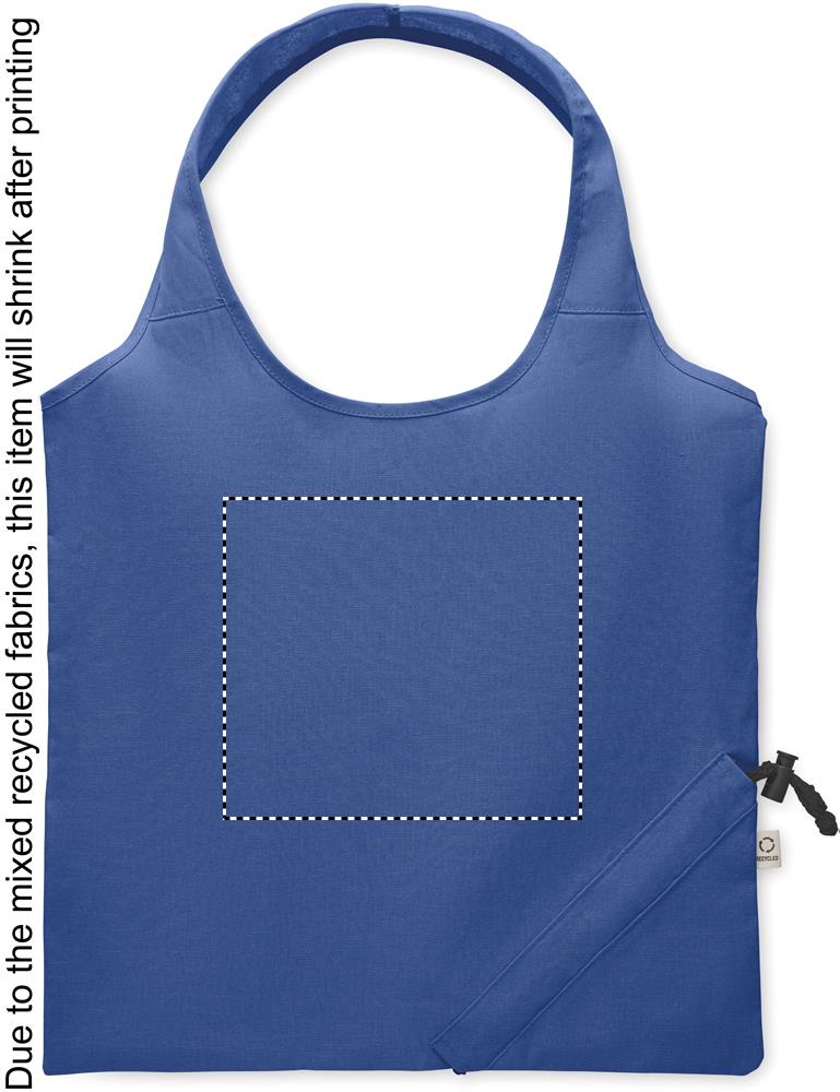 Faltbare Einkaufstasche aus recycelter Pre-Consumer-Baumwolle (70% recycelte Baumwolle und 30% RPET). 140 g/m². Artikel kann nach dem Bedrucken schrumpfen.