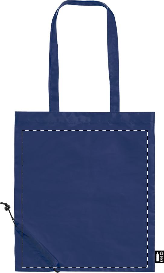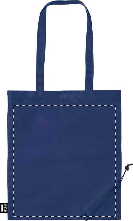 Faltbare Einkaufstasche mit langen Henkeln. Material: 190T RPET-Polyester. Mit RPET-Label.